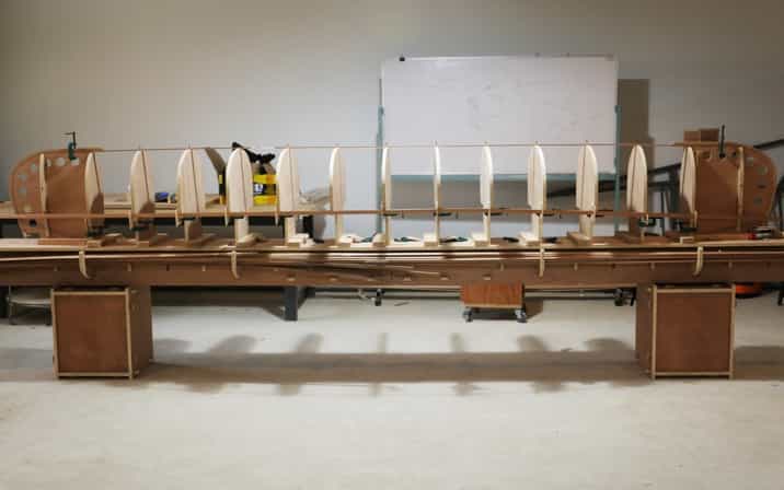 | 坊作流程: | Day1>,拼接船台,船头船尾木,切木条; Day2-8>,拼接船体(阴天 +2); Day9>,打磨,封胶(阴天 +1); Day10>,内面打磨封胶(阴天+1); Day11>,打磨,三角木,船舷(阴天+1); Day12>,中杆,座椅; Day13>,试水。结束。 |