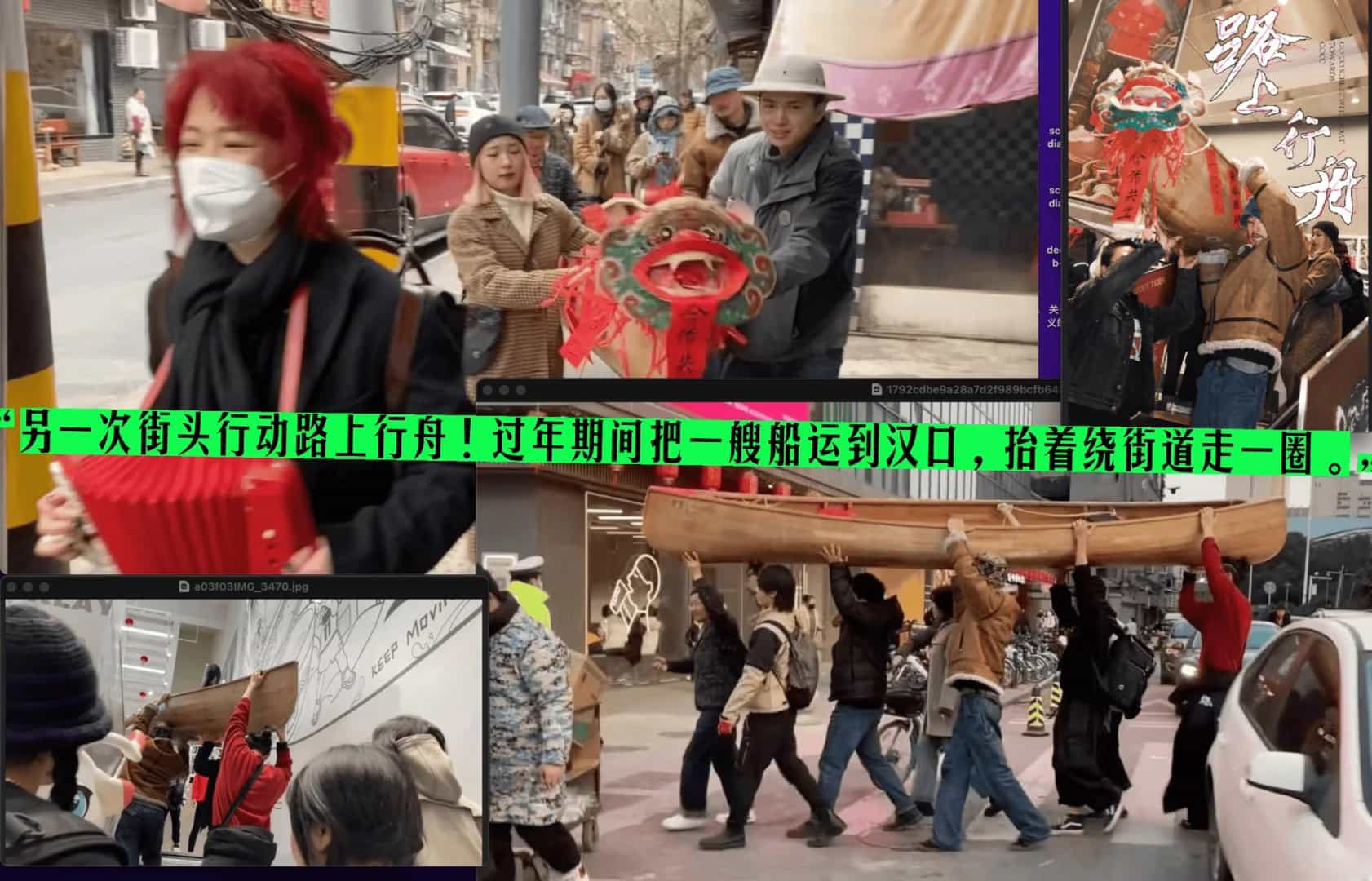 [5],路上行舟的消息: https://mp.weixin.qq.com/s/RPQ7wJRl2EtJjGFdXwZVgg ,《路上行舟》和《武汉过年七天乐》纪录片在展览“步行指南”: https://mp.weixin.qq.com/s/J-z8dq50Jp624PPu5B52OQ (2023,长征空间,策展:李佳),在台北的放映: https://cjdproject.web.nycu.edu.tw/2024/12/12/revisiting-the-belief-by-canoe/ (2024,“水土不伏:都市邊界.映像對話”,国立阳明交通大学文化研究国际中心)。